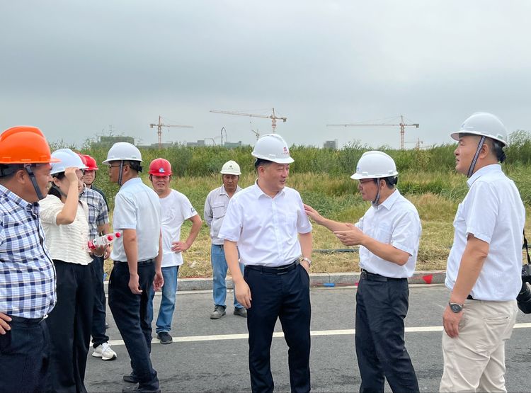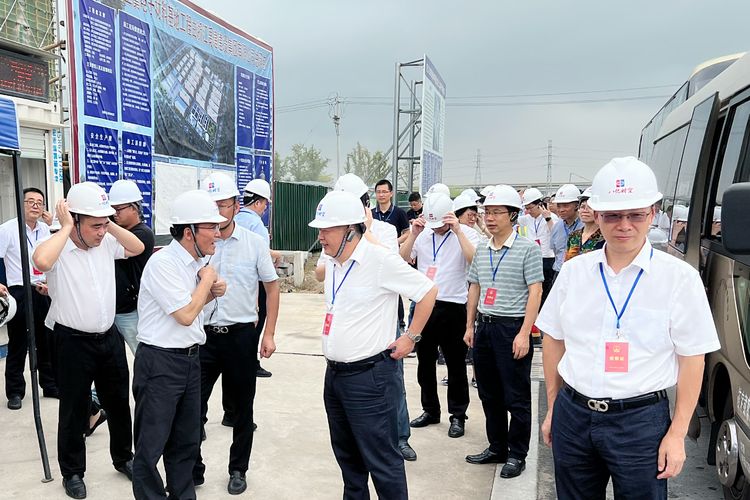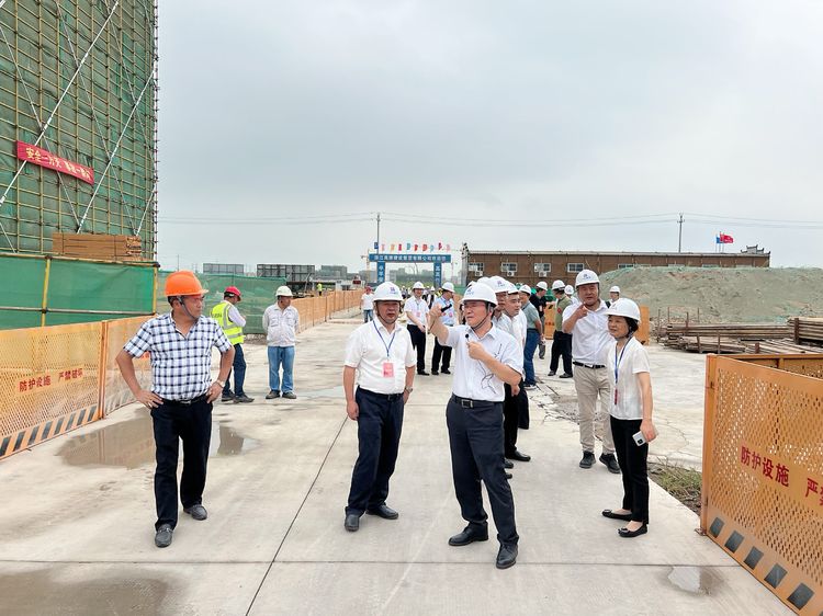 2022年8月24日,由绍兴市上虞区人大常委会主任陈坚带队的上虞区人大视察团,一行40余人,来到八亿时空上虞电子新材料基地工地视察项目建设。区委常委、经开区党工委书记孙海明一同参加了视察。